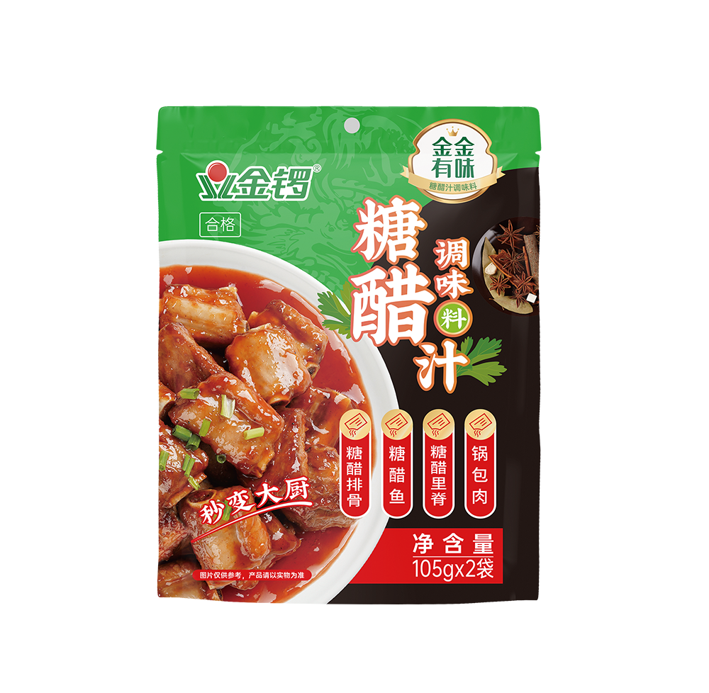 糖醋汁調味料是采用番茄調味醬、釀造食醋等配料,經科學配方,結合現代化先進技術,精心加工而成的一款健康美味、使用便捷的產品。產品用于糖醋類菜品的制作,使用后菜品酸甜爽口,色澤鮮亮。