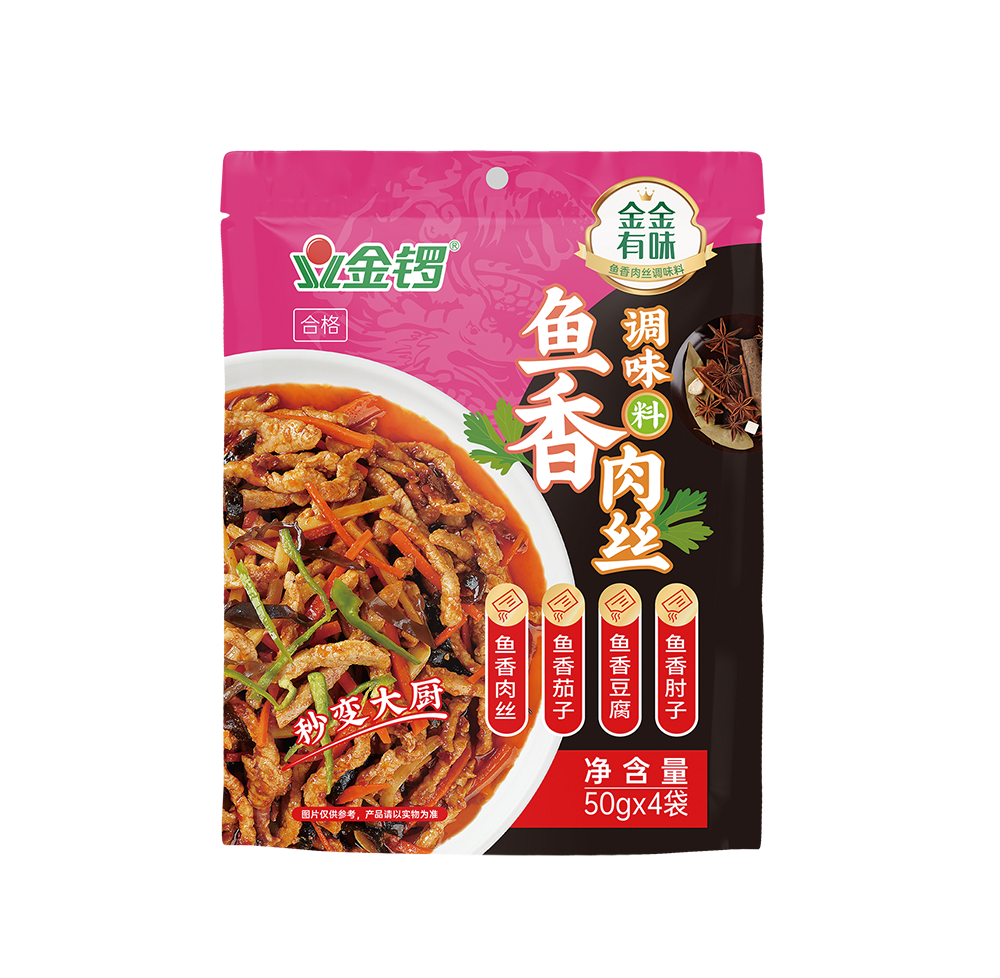 魚香肉絲調味料是采用金鑼非轉基因大豆油、豆瓣醬、釀造食醋、釀造醬油等配料,經科學配方,傳承傳統炒制工藝,結合現代化先進技術,精心加工而成的一款健康美味、使用便捷的產品。產品用于魚香肉絲菜品的制作,使用后菜品香味醇厚,魚香撲鼻,色澤紅亮。